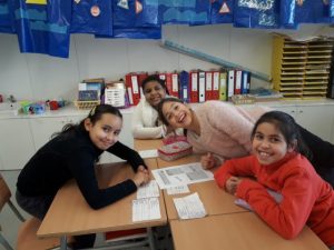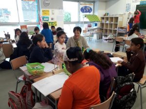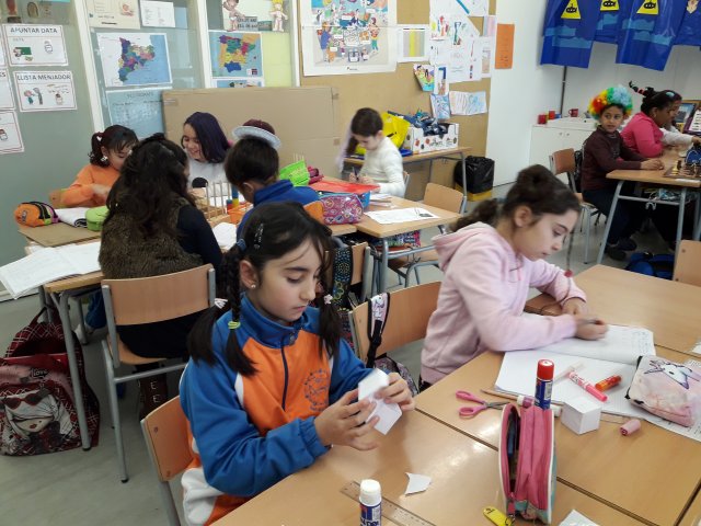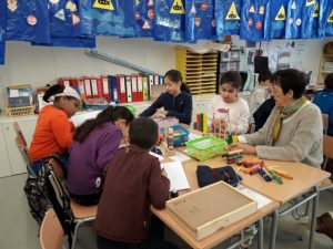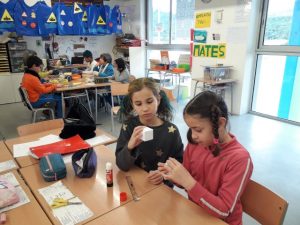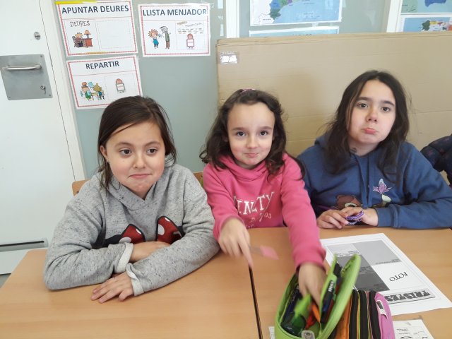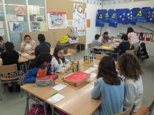 I després l’hem convidada a seure al racó de reptes matemàtics. Ens ha anat molt bé perquè ens ha ajudat a resoldre els reptes i ens ha guiat en l’ús del material manipulatiu.