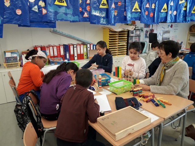 Avui hem rebut la visita de l’Elvira, la formadora del curs de matemàtiques manipulatives que els/les mestres portem a terme . L’hem explicat que havíem començat a treballar les mates per racons.