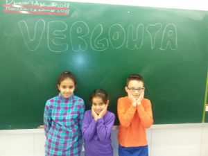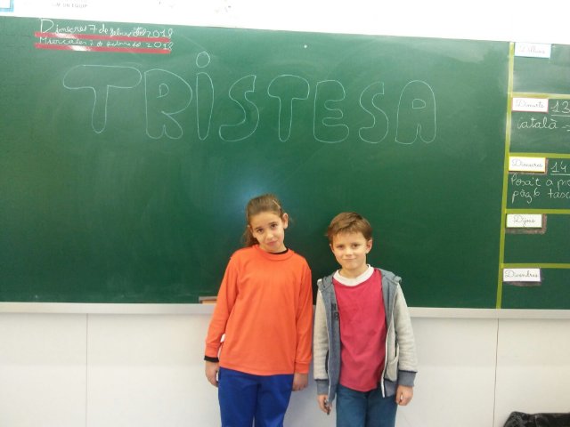 Hem parlat de dues emocions noves: la vergonya i la sorpresa que, els/les nens/es,  han treballat de forma individual. La resta d’emocions: l’alegria, la tristesa, l’ira, la por i el fàstic, s’han treballat en grup. Cada grup ha exposat l’emoció que li ha tocat i els altres companys/es han afegit situacions o experiències viscudes. Al final cada grup s’ha fet una foto posant la cara de l’emoció treballada.