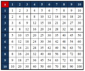 En aquesta taula podreu veure totes les taules de multiplicar des del 0 fins el 10.