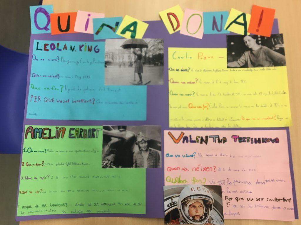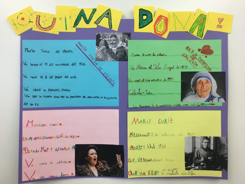 Cada classe ha treballat quatre dones: El grup de tercer B hem estudiat la vida de Rosalind Franklin, de Valentina Tershkova, de Leola N. King i d’Amelia Earhart. El grup tercer A Montserrat Caballé, Mare Teresa Calcuta, Maria de Filippis i Marie Curie.