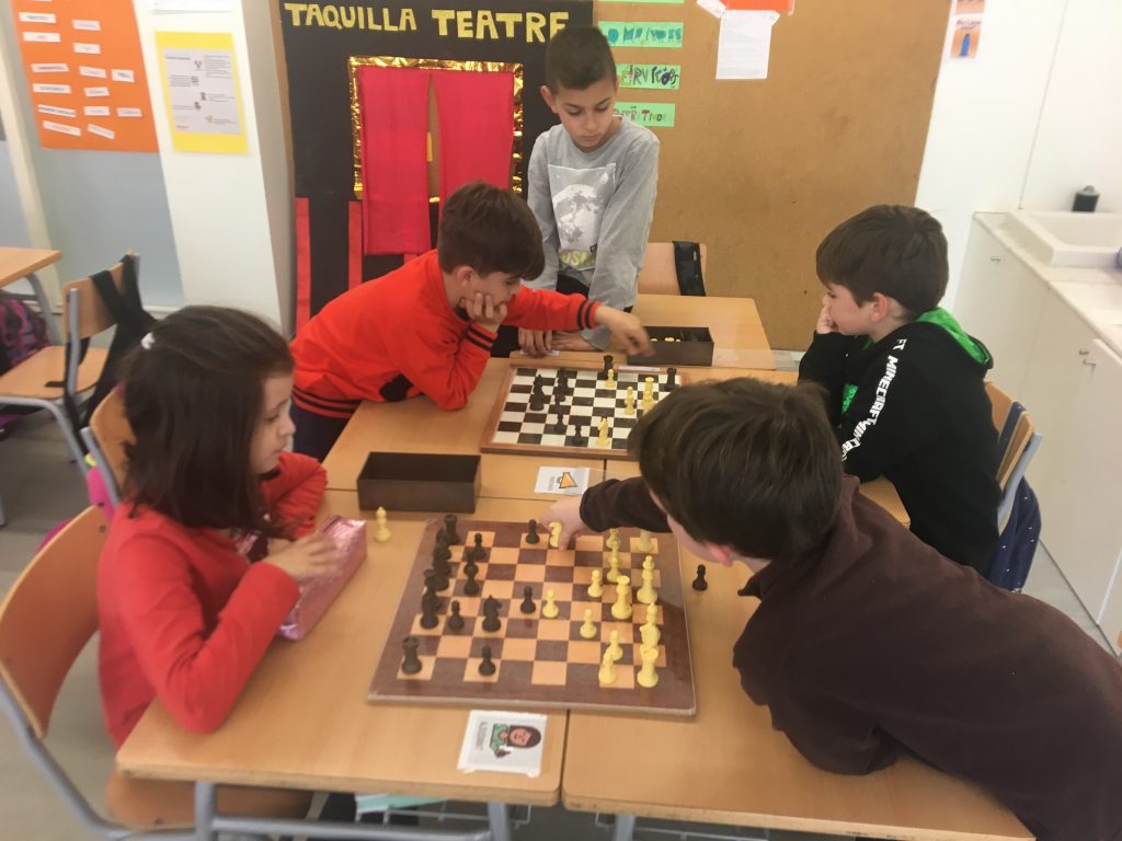 Els nens i nenes de 3r ens estem iniciant en el joc dels escacs. A través dels escacs treballem les normes del joc, la direccionalitat, les coordenades, els elements geomètrics, el valor de les peces, estratègia del joc, la concentració, el raonament…