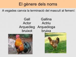 Quan parlem del gènere d’un nom, volem dir si és femení o masculí.