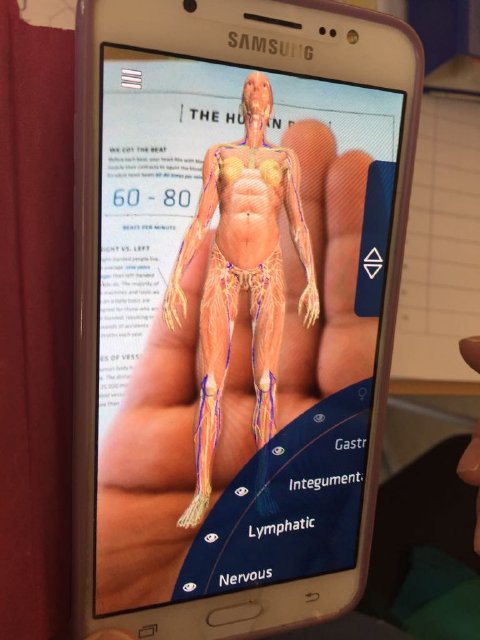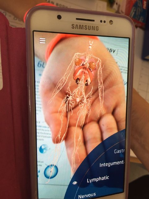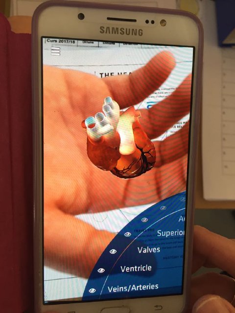 Una de les pregunte, sobre el què volien saber, va ser com eren els òrgans que tenim dins el nostre cos. Aprofitant aquesta pregunta ens van baixar un programa de realitat augmentada que ens ha permès veure el nostre cos i els seus sistemes amb les tauletes tàctils. Us deixem algunes fotografies, els va encantar agafar amb les seves pròpies mans un cor. Continuarem treballant amb aquest programa, Anatomy 4D.