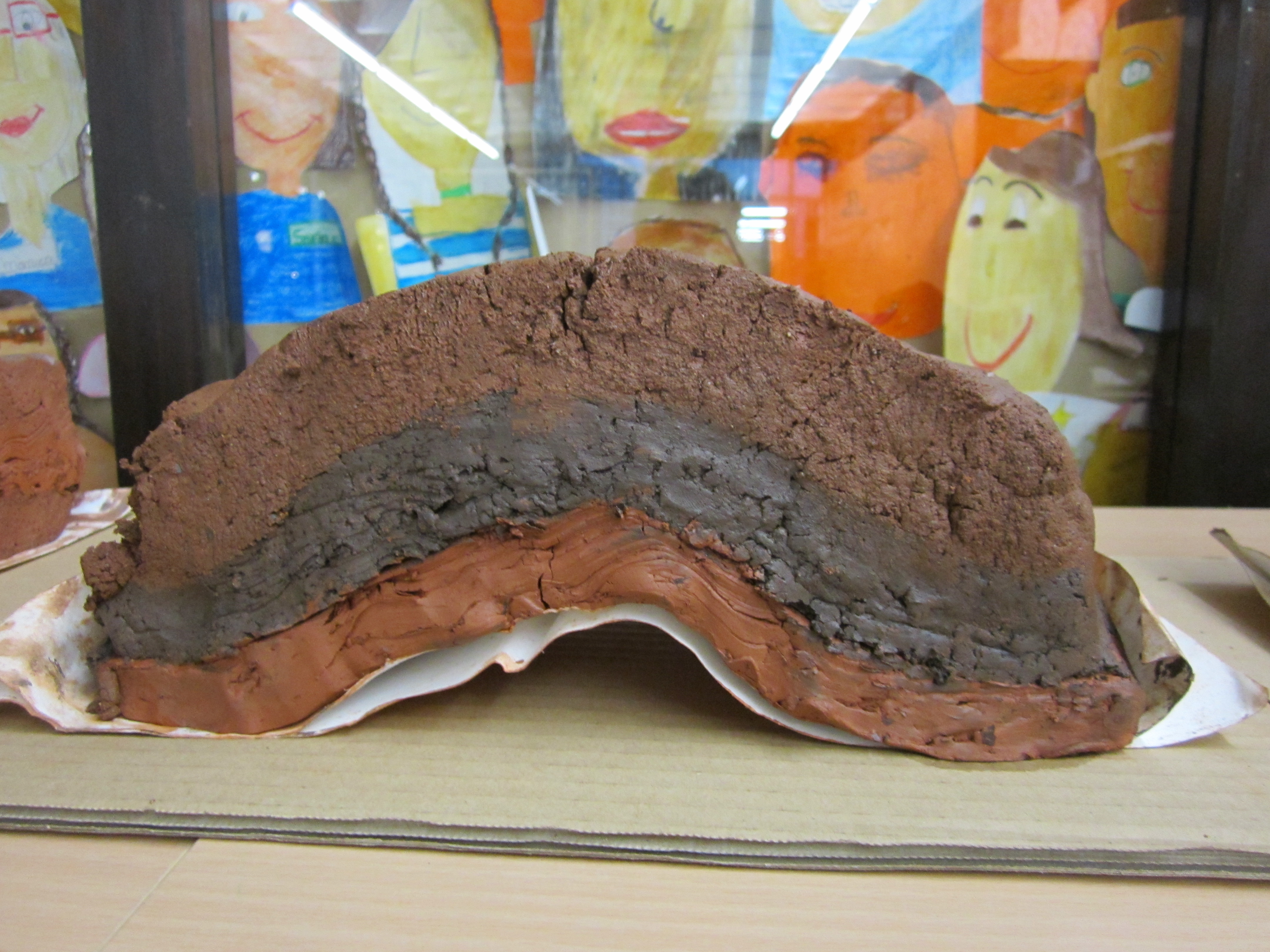 Com que estàvem estudiant el relleu a la classe vam decidir de fer una pràctica al laboratori. La pràctica consistia en agafar el fang (fet per nosaltres a la classe de plàstica), i anar-lo amassant fins que aconseguíem una falla o un plegament.