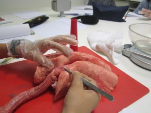 Cada divendres anem al laboratori per a disseccionar varis òrgans. El material que hem fet servir més és: una cullereta, unes pinces,unes tisores… La primera dissecció que hem fet es de els pulmons i la explicarem amb un breu text. La vam fer fa dos setmanes exactes.