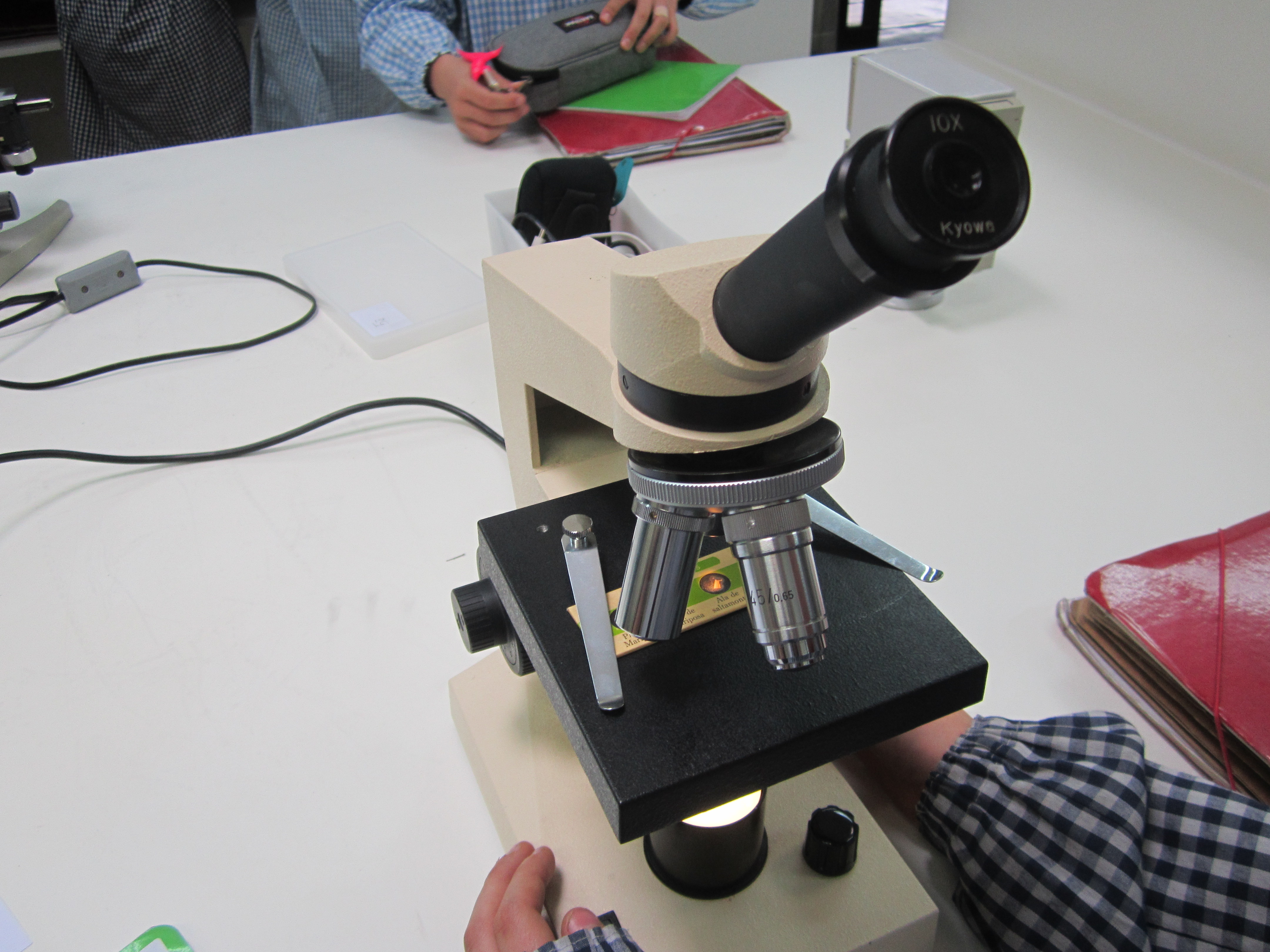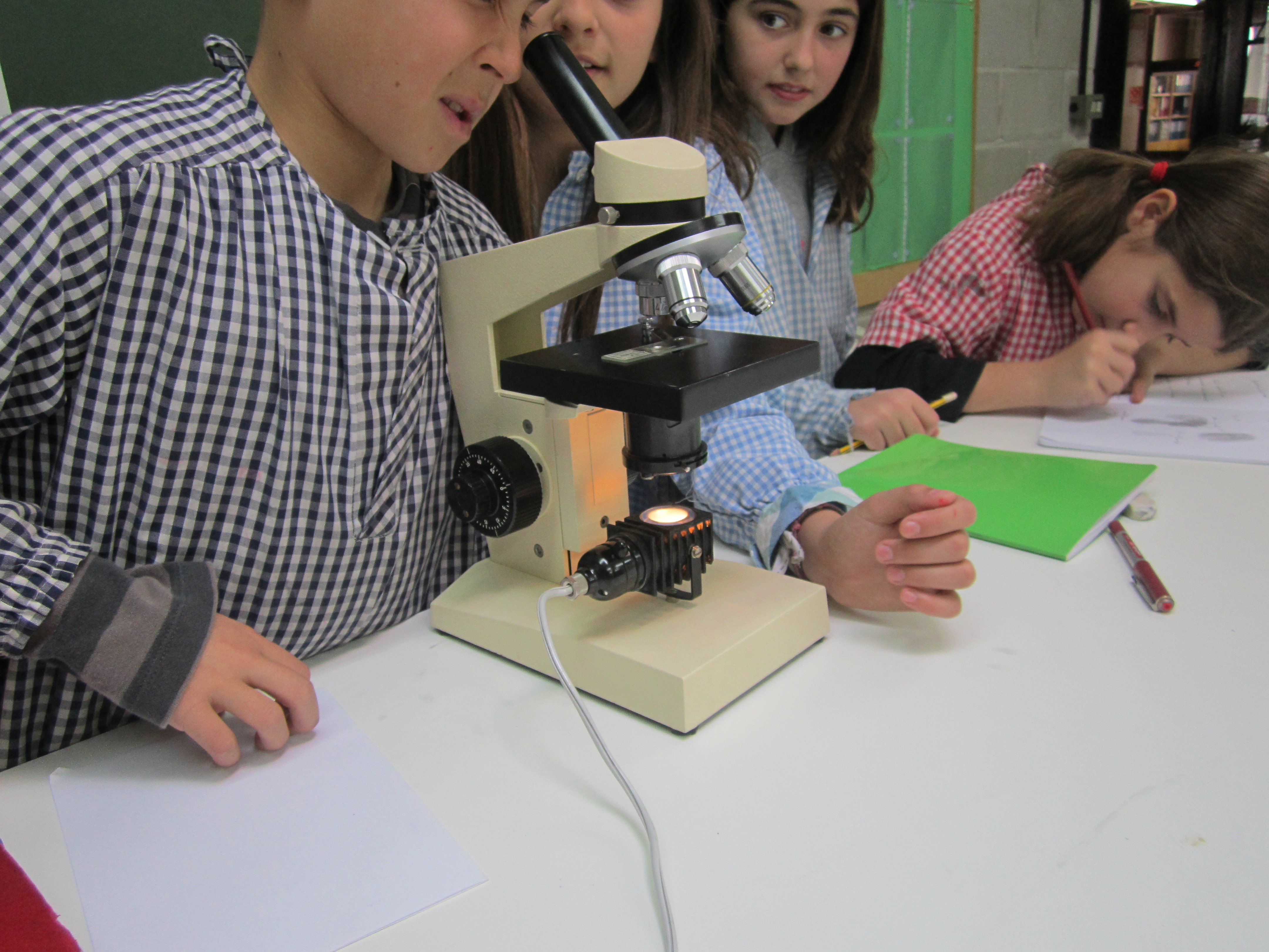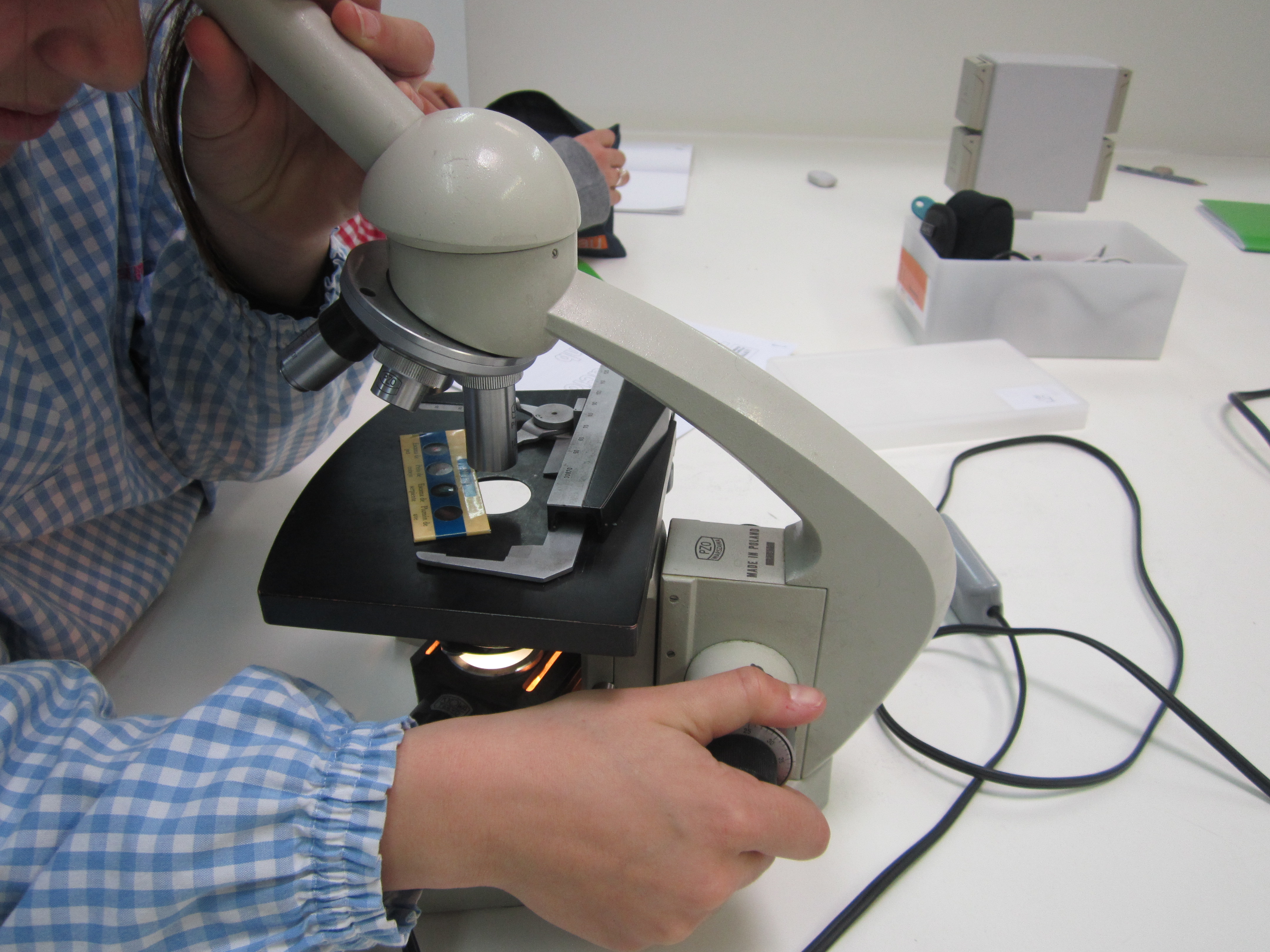 El dia 23 de Gener,al laboratori, hem experimentat amb uns microscopis mirant diferents preparacions (potes, ales, antenes, sang, …) de diferents animals, per exemple: una pota d’abella, ous de tauró, les ales d’una mosca, les antenes d’un grill, la sang d’un gos i moltes coses més.