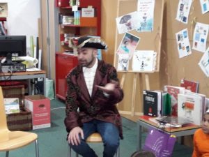 A l’arribar es va rebre un pirata bibliotecari que ens va explicar una història molt personal a través del conte L’enfonsa Pirates.