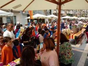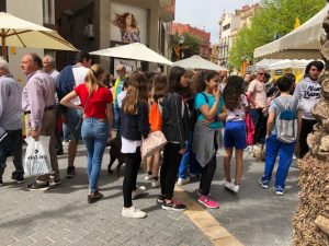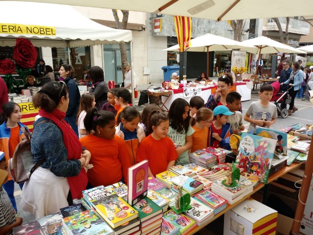 Alumnes de l’escola han sortit al carrer per veure les parades de roses i de llibres de la Rambla Vidal.