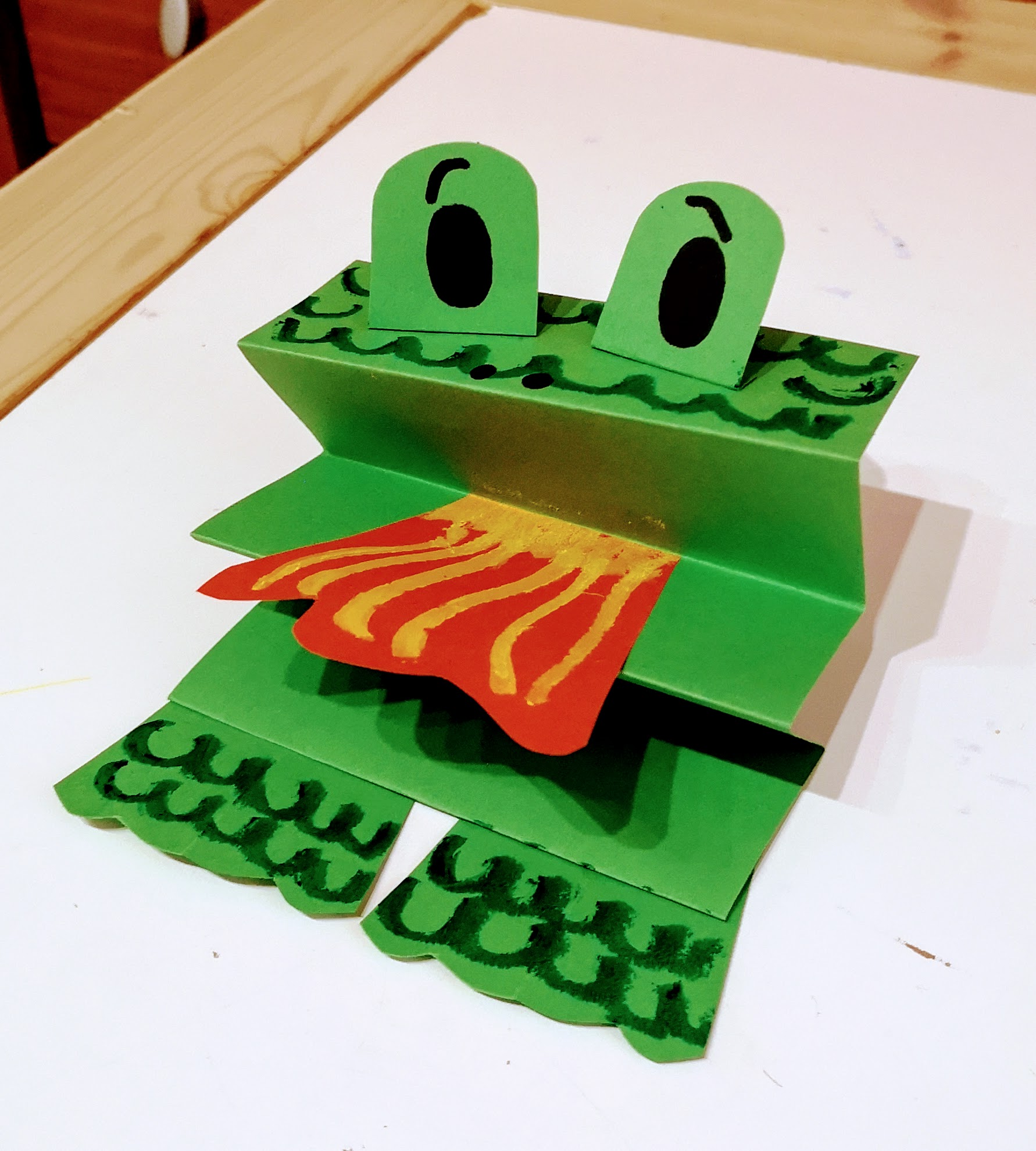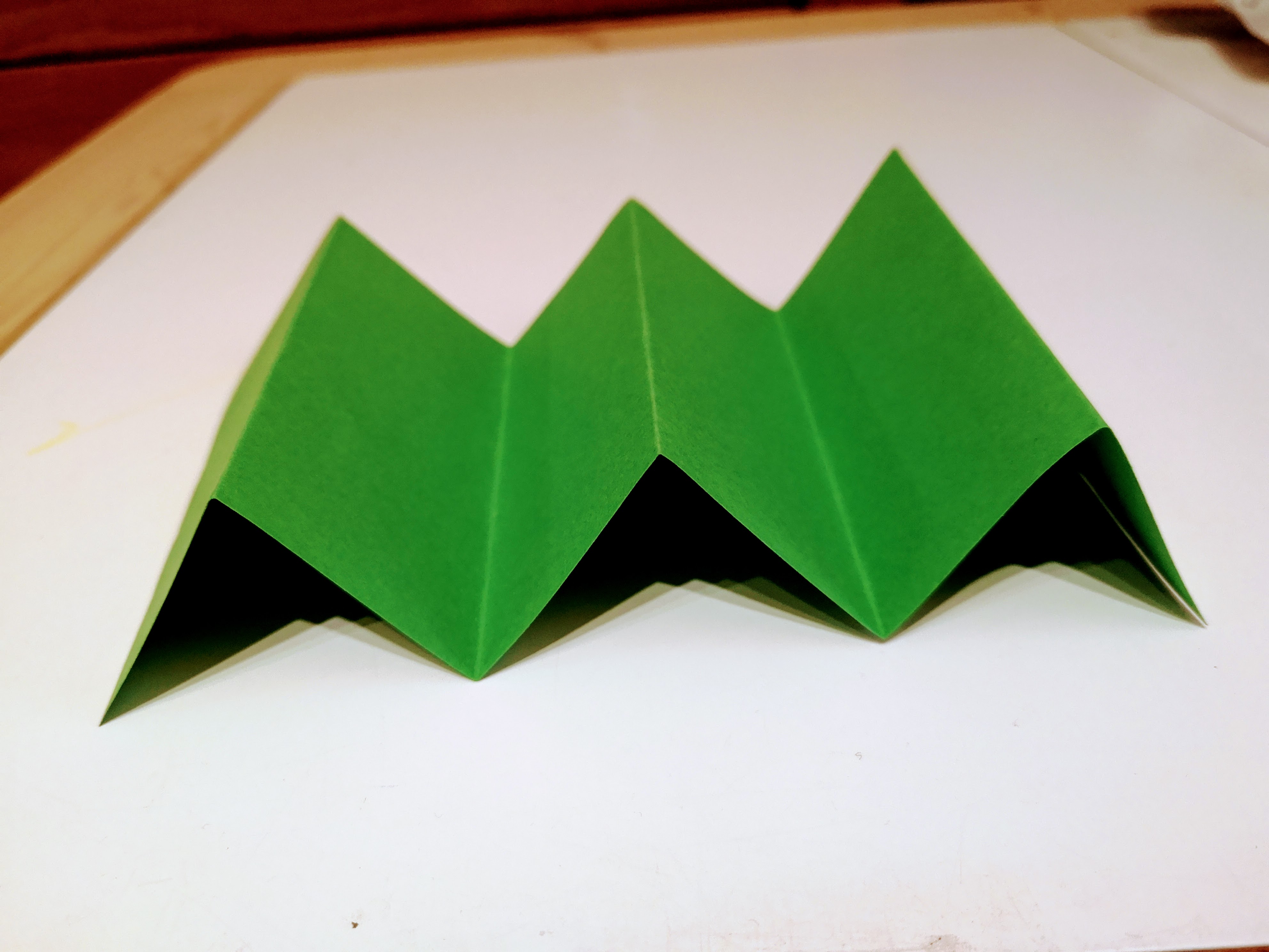Doblegueu la tira de paper verd com si fos un acordeó (la tira de paper verd és mitja fulla tallada per la part llarga). Aquest serà el cos del nostre drac.