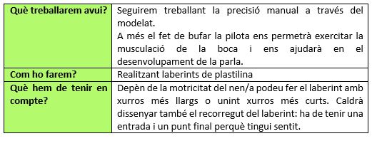 La proposta d’avui és crear un laberint de plastilina per fer-hi córrer una bola. Tot el que necessiteu per a aquesta activitat és plastilina, una bola de ping-pong (o de paper de plata) i una palleta. Primer hauràs de fer uns xurros de plastilina i dissenyar el teu laberint, això t’ajudarà a guanyar molta força als dits. Llavors hauràs de descobrir com treure la bola del laberint només bufant. Aquí us deixem algunes imatges que hem trobat, però podeu crear el laberint que us agradi més!