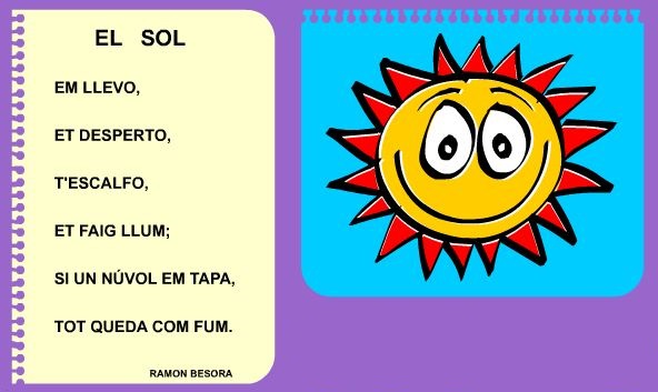 La poesia és un bon recurs per a treballar el llenguatge amb els alumnes, ja que partim de textos curts, amb una gran riquesa de llenguatge. Jugant amb les paraules i els sons fomentem actituds positives respecte a la llengua i el seu potencial creatiu. Aprenent poemes exercitem la memòria d’una manera divertida i motivadora.