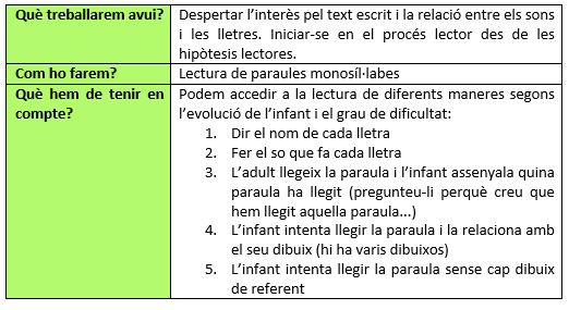 Si es donen les condicions necessàries, els infants aniran transitant per les diverses etapes de reconeixement de paraules i atribució de significat.