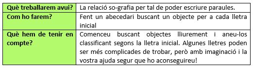 Heu de buscar a casa objectes que comencin per cada una de les lletres de l’abecedari!