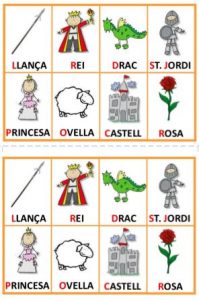 La última proposta que farem per celebrar la setmana de Sant Jordi és un memory. Ja sabeu que per fer jugar al memory heu de disposar de 3 a 6 parelles d’imatges iguals. Nosaltres us deixem un document amb un memory de Sant Jordi per si teniu impressora, però si no en teniu, no patiu! Poden ser cromos repetits, imatges de catàlegs o també dibuixos fets i decorats per vosaltres. Heu de posar les fitxes cap per avall i per torns, girar-les de dues en dues. Qui trobi dues fitxes iguals se les queda i repeteix torn. El joc s’acaba quan no queden fitxes a la taula i guanya qui n’hagi recollit més.
