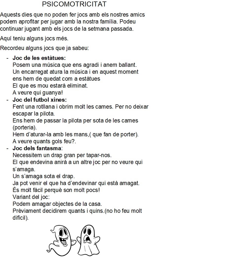Aquest bloc també el podeu aprofitar les famílies de Comunitat de Petits ( P3-P4- P5), és important aquests dies mantenir-nos actius. Per tant des de l’àrea d’educació Física de l’escola, continuen treballant per tal que pogueu continuar realitzant exercici físic a casa.