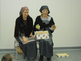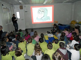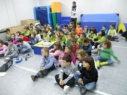 A la tarda vam anar a la Sala d’educació física i vam venir 2 castanyeres i ens van ensenyar unes caixes que tenien dibuixos, quan ens ensenyaven un dibuix havíem de cantar.