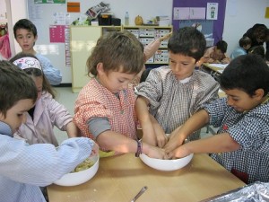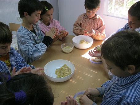 M. GLORIA LOZANO PALACIN | 13 novembre 2011El dia 26 d’octubre vam fer panellets a l’escola. Els vam fer per grups. Vam pesar els ingredients amb la bàscula (patata, sucre i també farina d’ametlla): 500 grams de farina d’ametlla, 200 grams de patata i 400 grams de sucre. Vam aixafar els ingredients amb les mans i vam fer boles. Els vam decorar amb ametlles i pinyons.