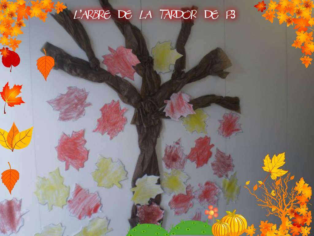 Volíem el nostre arbre de tardor i amb paper de seda marró i tot decidint entre tots quantes branques en tindria, el vam fer molt maco! Abans els nens i nenes ja havien pintant una fulla per decorar-lo.