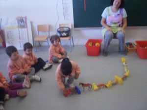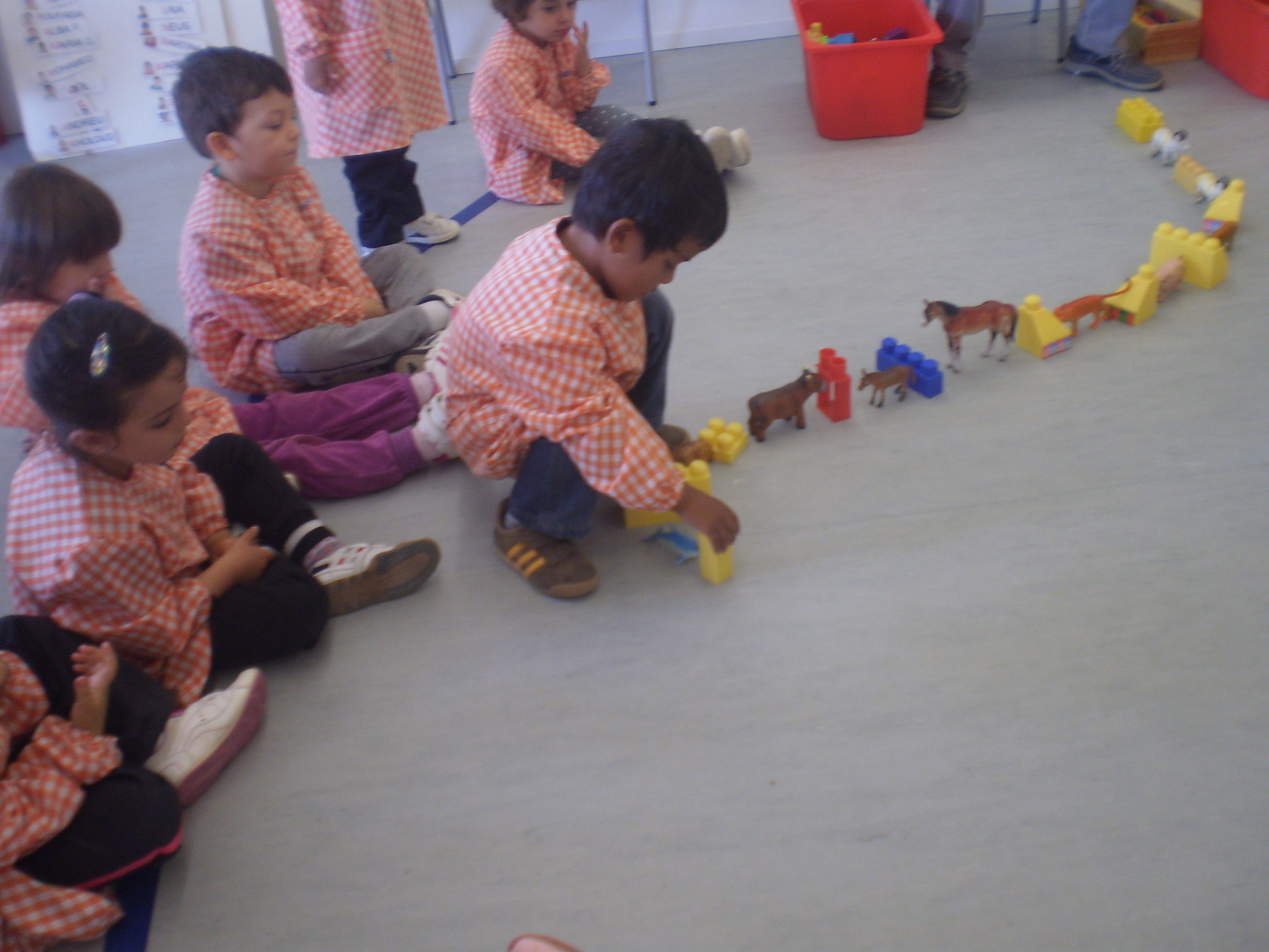Els nens i nenes de p3 hem descobert que fer mates és molt divertit . Aquesta setmana hem començat a fer camins (sèries matemàtiques). Aquesta és de peces de construcció i d’animals.
