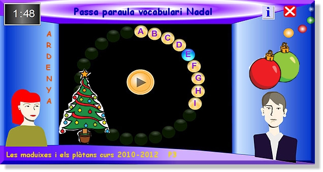 Aquest Nadal us hem preparat un joc per compartir amb els vostres fills i filles. És un joc de passa paraula de vocabulari de Nadal. Cal tenir en compte que no totes les paraules del joc són conegudes pels nens i nenes.