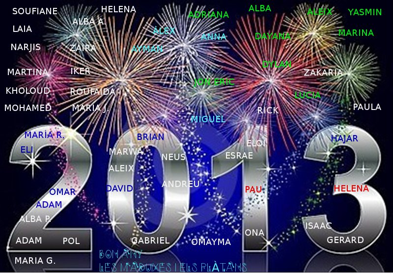 Bé, cada vegada estem més a prop del 2013. Tot just uns dies i estrenarem any nou. De tot cor esperem que sigui un any en què tots i cada un de nosaltres trobem la felicitats i puguem compartir grans moments que ens ajudin a crèixer com a persones i també contribuir a fer un món millor.