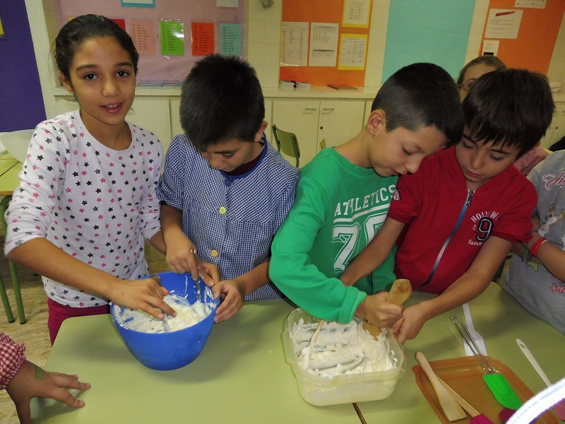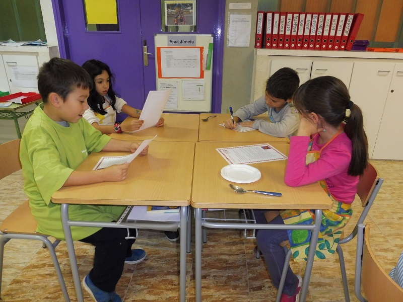 Els nens i nenes de 4t vam aprendre a fer un text instructiu (recepta) i vam elaborar unes galetes de xocolata amb fruits secs. Gràcies a les mares i àvies que van venir a ajudar-nos.