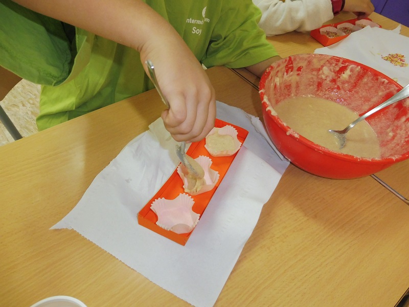 Després vam fer un postre de tardor: Les natilles dolces. Fins i tot vam preparar una safateta taronja que ens va quedar ben maca!!!! La recepta ens la vam endur a casa!