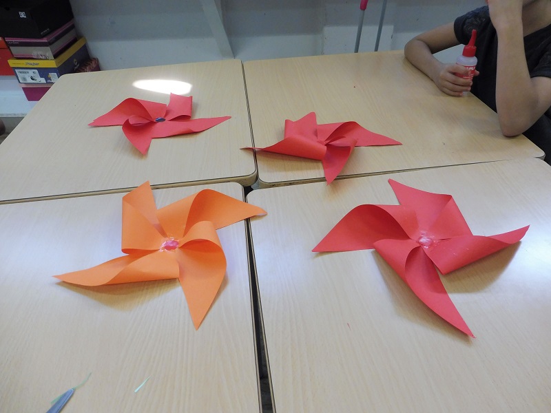 I per últim, vam confeccionar uns molinets de vents, que per aquest temps van que volen!!!!