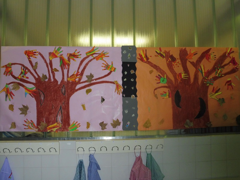 Vam realitzar un mural amb dos arbres de tardor que portaven unes fulles seques però plenes de missatges!