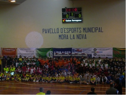 El dia 01 de març vam participar en una trobada d’handbol a les terres de l’Ebre. Aquesta és la foto de grup que es van fer tots els participants. Les nenes del mig de color blau són les nostres.