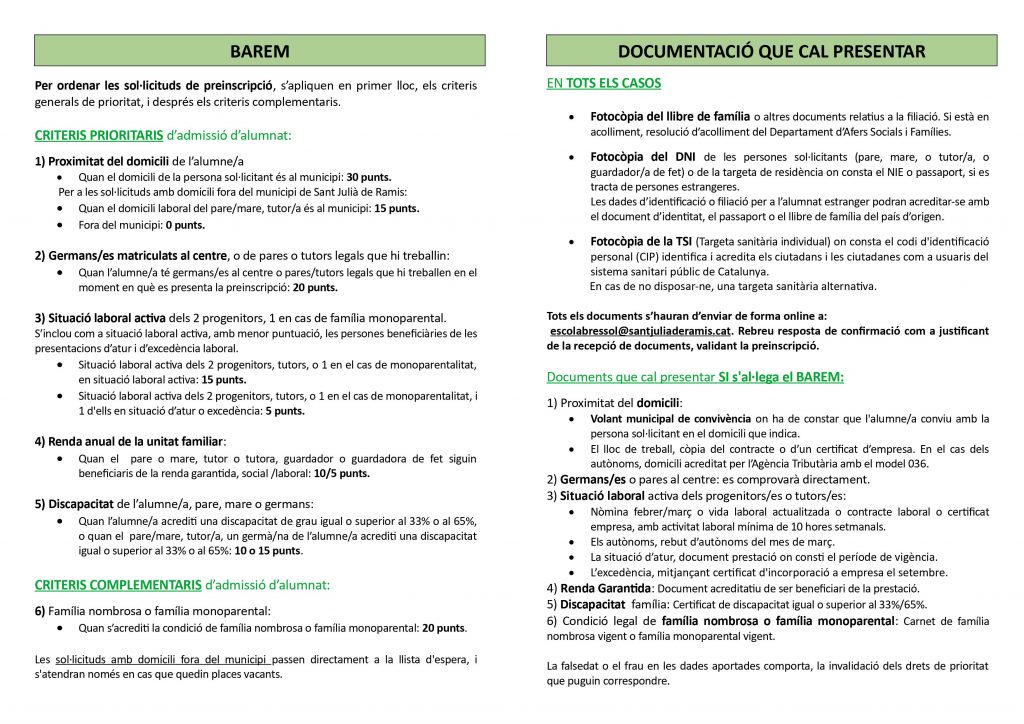 Per qualsevol dubte o incidència amb la tramitació, poseu-vos en contacte al telf 972 17 30 82 (de dilluns a divendres de 9h a 13h) o contacteu amb escolabressol@santjuliaderamis.cat