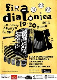 El passat dissabte i diumenge, 19 i 20 de gener de 2012 el Centre Cultural Calisay d’Arenys de Mar  va acollir la primera Fira Diatònica, organitzada per l’Associació d’Acordionistes dels Països Catalans. El certamen vol ser un espai de trobada de luthiers, distribuïdors d’acordions, professorat d’escoles de música tradicional i, és clar, acordionistes. Durant la Fira han hagut  diverses actuacions musicals, estands, una exposició …