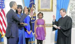 Obama i Biden prenen possessió aquest dimarts del seu segon mandat a la Casa Blanca. La celebració d’avui és simbòlica perquè la Constitució dels EUA mana que el càrrec s’ha de jurar el 20 de gener. Com que aquest any ha caigut en diumenge, la pressa oficial va fer-la ahir en petit comitè i avui toca un bany de masses a Washington, a les escales del Congrés, amb un públic d’unes 800.000 persones.