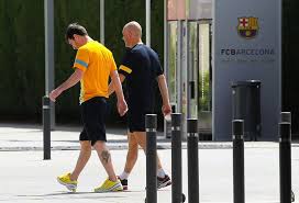 En un dia en què l’equip de Tito Vilanova no s’ha entrenat, Messi i Javier Mascherano –lesionat al genoll dret i que estarà sis setmanes de baixa–han realitzat exercicis de recuperació.