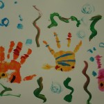 Es posa pintura a la mà i s’estampa sobre paper o cartolina. Després es fan els petits detalls (ulls, potes, antenes, etc). Com podeu veure es poden fer tot tipus d’animals (Papallona, gall, peix, cranc, etc.)