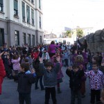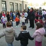 Els alumnes de 6è van llegir un manifest a favor de la pau i tots els alumnes de l’escola van cantar i ballar la cançó de “El món seria més feliç”.Lectura del manifest per la pau