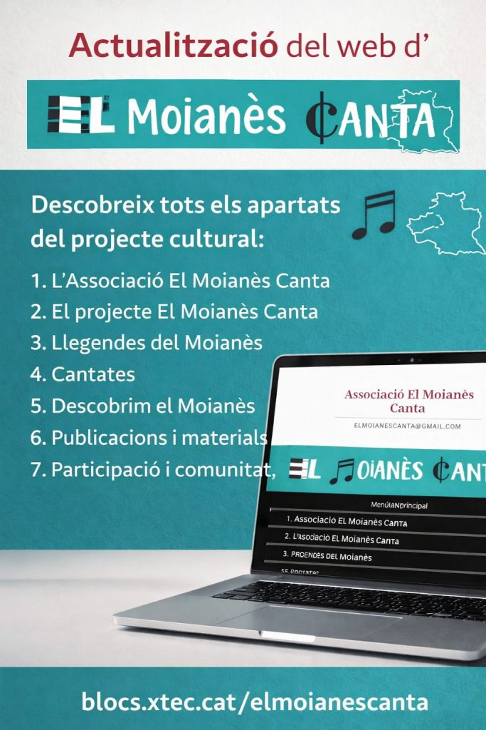 El Moianès Canta renova el seu web per reforçar el projecte cultural L’Associació El Moianès Canta ha realitzat una actualització del seu web amb l’objectiu de millorar la claredat, la coherència i la projecció del projecte, i d’oferir una visió … Continua llegint