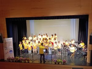 L’acte va reunir a l’escenari els cantaires de l’Institut Escola Castellterçol i de l’Escola de Sant Quirze Safaja (ZER El Moianès Llevant), acompanyats pels músics de l’Espai Musical de Moià, en una interpretació que va emocionar un públic entregat.