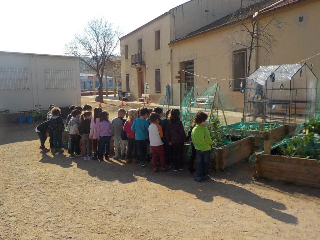 Aquesta tarda hem anat a l’hort de l’escola. L’hem visitat i hem vist tot el que hi havia plantat. Després hem agafat un enciam de fulla de roure i n’hem arrencat l’arrel per veure com era. Un cop fet tot això, hem visitat l’hivernacle i tot el planter que hi ha dins, ens hem distribuït en dos grups i , mentre un regava, l’altre feia planter de pebrots i després hem fet canvi!