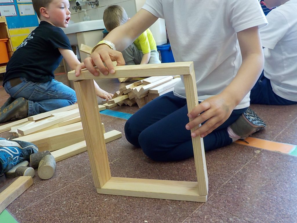 Aquesta tarda hem fet de constructors i arquitectes. Amb diferents materials hem pogut crear de forma lliure tot allò que hem volgut.