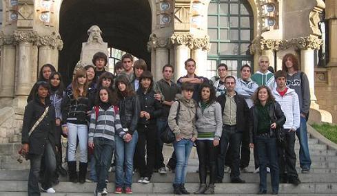 Fotografia de grup a l’entrada de l’Hospital de Sant Pau