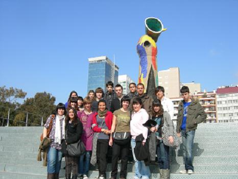 (A la fotografia els alumnes participants davant l’escultura de Joan Miró: “Dona i ocell”.)
