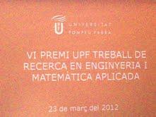Ahir, divendres 23 de març,a les 16,30 hores, va tenir lloc l’acte d’entrega de diplomes als finalistes del VI PREMI UPF TREBALL DE RECERCA EN ENGINYERIA I MATEMÀTICA APLICADA . Entre els premiats està el Treball de Recerca “DISPOSITIU DE SEGUIMENT SOLAR”, presentat per l’alumne de 2n de batxillerat del nostre institut, Iván Pisa.
