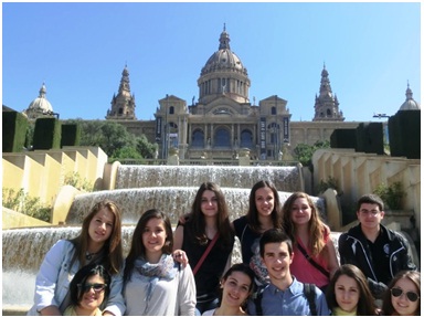Finalitzada la visita van visitar el Pavelló Alemany (obra arquitectònica de Mies Van Der Rohe) situat al costat de les fonts de Montjuic.