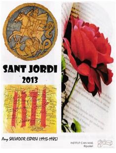 Aquest 23 d’abril vam celebrar Sant Jordi 2013 a l’institut. Aquest concurs es celebra des de 2000. Mentrestant, els de 4t estaven repartits per grups en diferents paradetes per la ciutat de Ripollet venen roses per recaptar diners pel viatge de final de curs.
