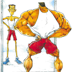 Una persona que es veu sempre amb falta de tonicitat i musculatura, pateix de vigorexia, la qual cosa la porta a realitzar exercici físic de manera obsessiva compulsiva i peses cada dia de manera continuada.