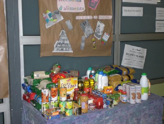 Al nostre institut la recollida d’ aliments es desenvolupa entre els dies 10 i 18 de desembre. Les aportacions fetes per la comunitat educativa es recullen a una taula de l’ entrada i posteriorment seran entregades pel promotor de la campanya, el professor Gener, a Càrites.