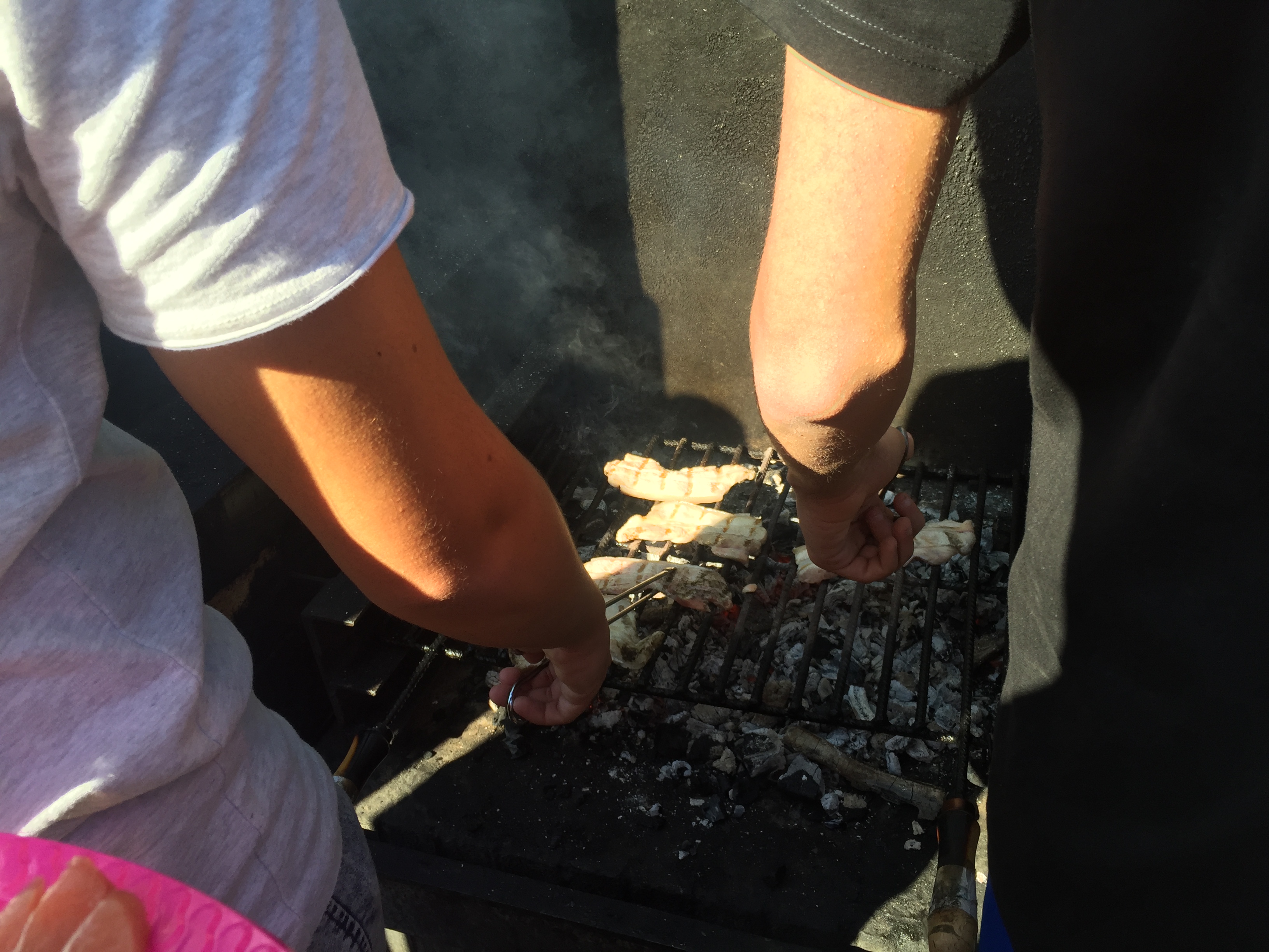 Feia un temps magnífic i una vegada en les barbacoes, cada grup agafava una taula i preparava el seu menjar, mentre esperàvem que les barbacoes s’haguessin escalfat prou. Cada grup tenia els seus propis cuiners.