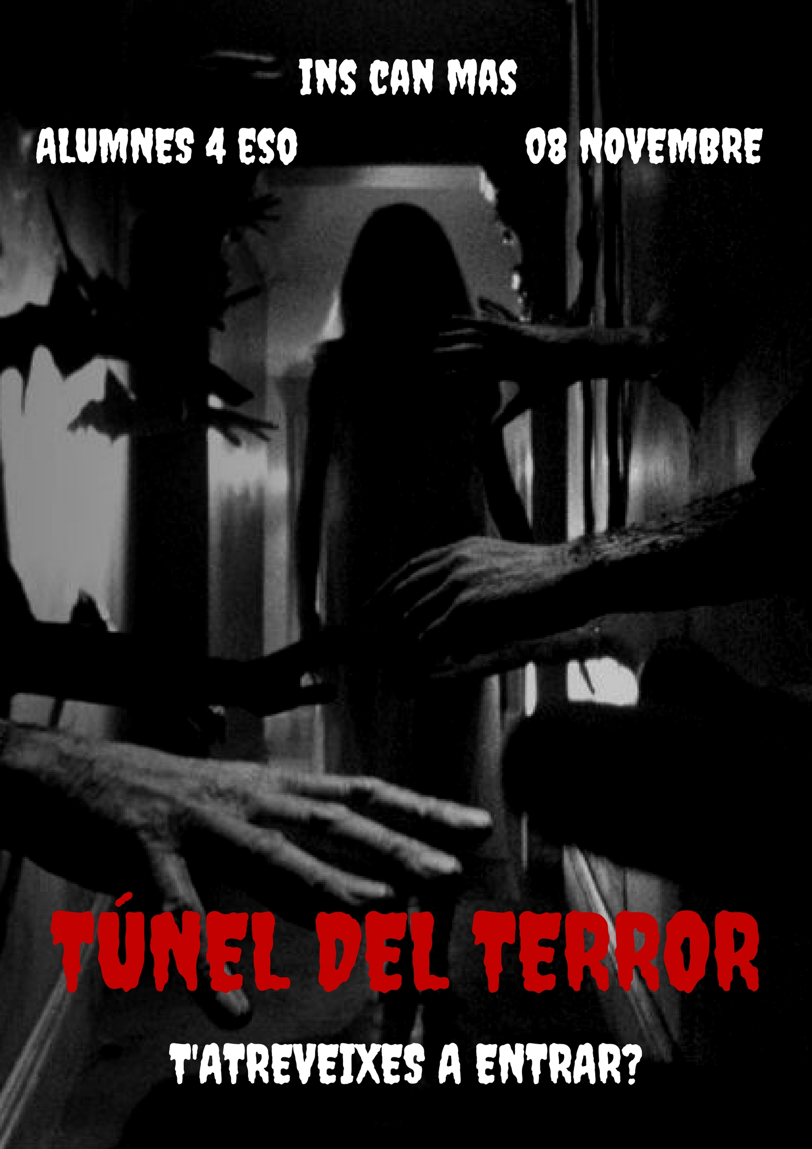El pròxim dia 8 de novembre els alumnes de 4t d’ESO faran, per segon any consecutiu, el “Túnel del terror”. Aquesta activitat es farà per guanyar diners per al viatge de final de curs dels alumnes de 4t que hi participin. Es farà un recorregut per diferents espais de l’institut Can Mas. Hi haurà tres franges horàries per apuntar-se a l’activitat.